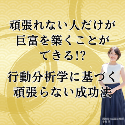 また、上手くいかない原因をあなた自身の意思の弱さや能力のせいにしないので、あなたがどんな状態であったとしても、目的、目標に向かって進み続けることができるようになります。